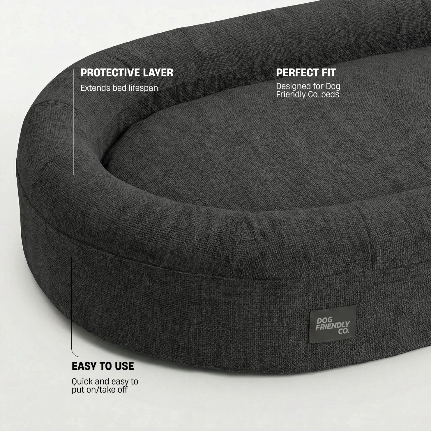 An easy to use protective cover for your Dog Friendly Co. bed.