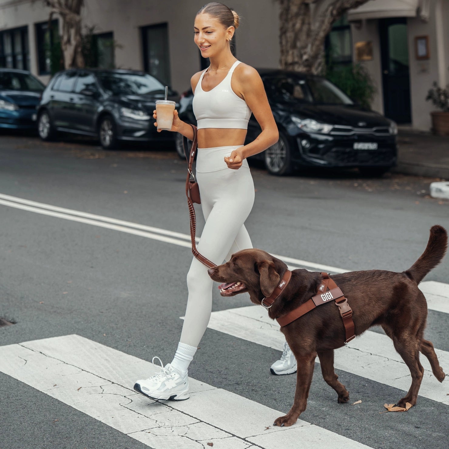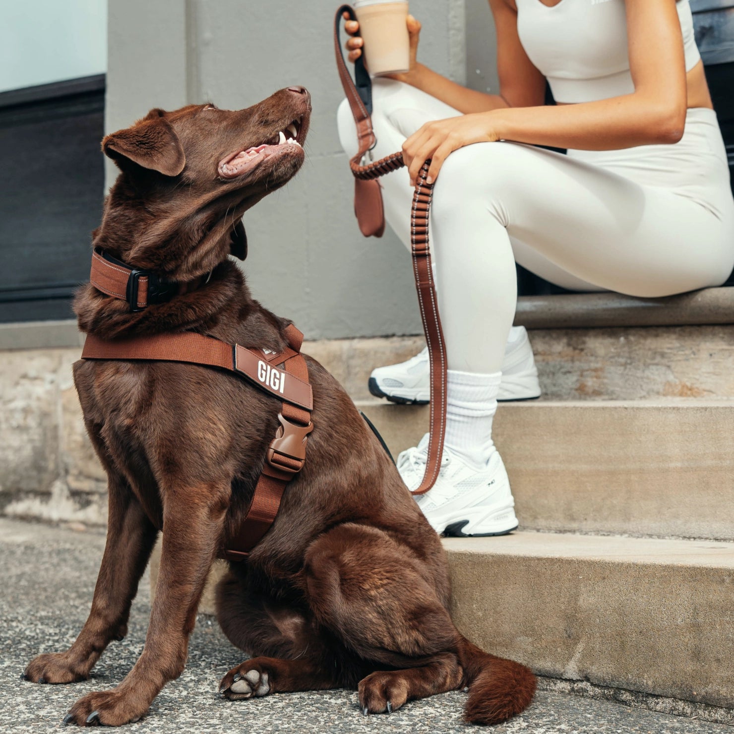 Inspired by the everyday ritual of coffee runs with your dog, this setup brings together the essentials for calm, comfortable city walks.